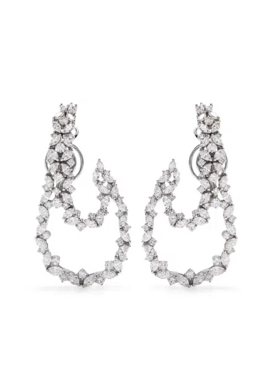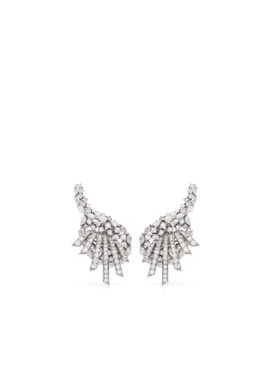 18kt White Gold Clip-on Earrings With Diamonds In Silber