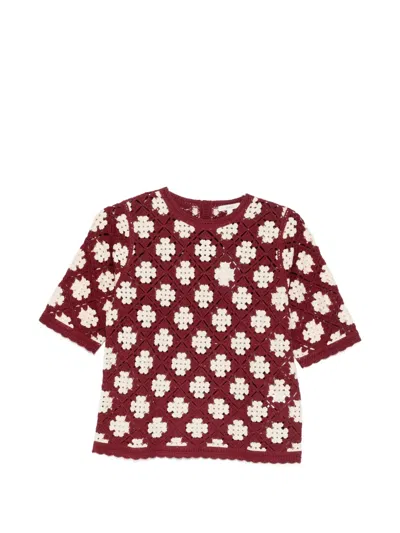 Perforated Short-sleeved Cardigan In Red