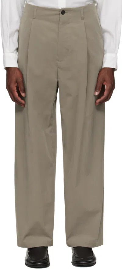 Navy Cotton Typewriter Garment-dyed 3pleated Tapered Trousers In Blue
