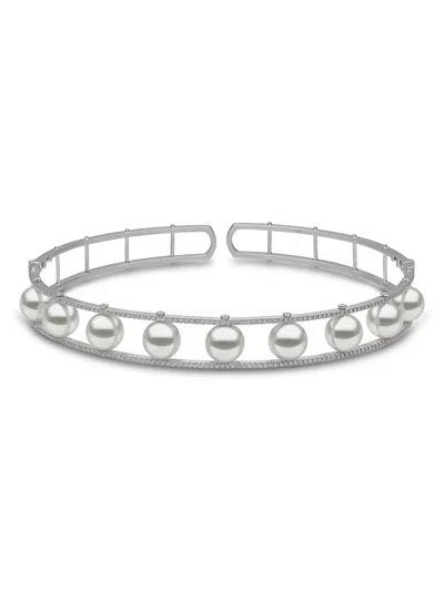 18kt White Gold Classic Akoya Pearl And Diamond Earrings In Silver