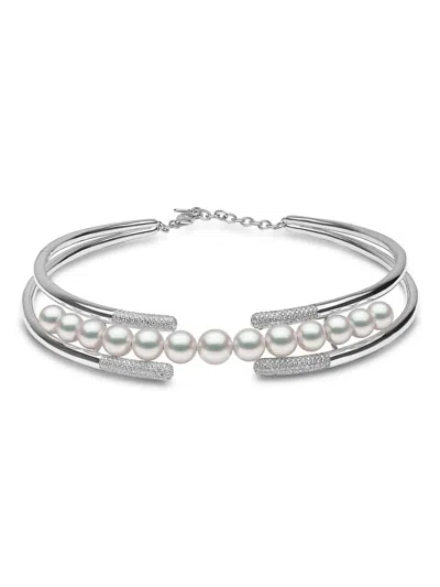 18k White Gold Petal Akoya-pearl And Diamond Earrings In Silver