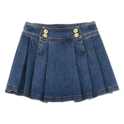 Versace Kids Pleated Denim Medusa Mini Skirt In Blue