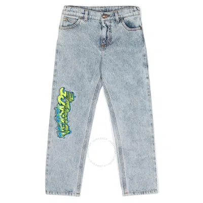 Kids Straight Leg Logo Embroidered Denim Jeans In Blue