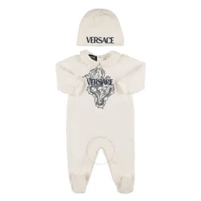 Infant Dragon Cotton Jersey Romper & Hat In White