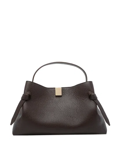 Gyoza Knot Leather Tote Bag In Brown