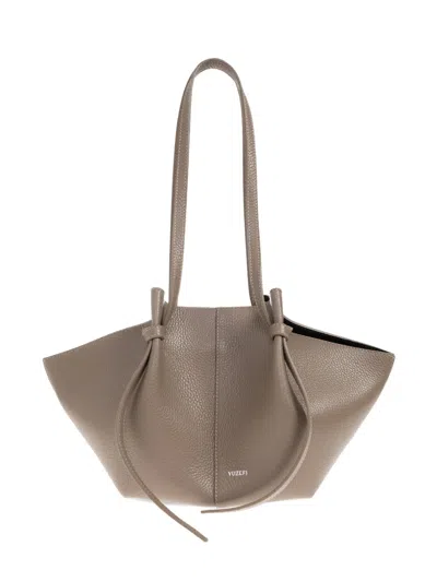 Knot Strap Grained Leather Tote Bag In Neutral