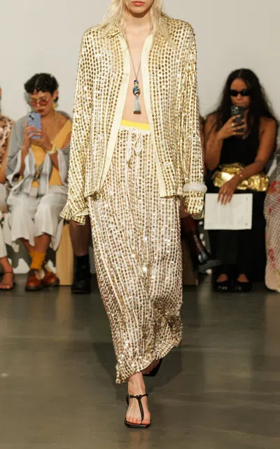 Womens Ivory Marcella Beaded Silk Midi Skirt Xs In White