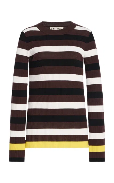 Womens Ink Multi Dumas Contrast-stripe Wool-blend Top Xs In White