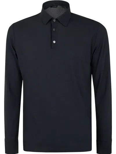 Indigo Blue Polo Shirt With Half-length Button Placket