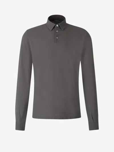 Ice Cotton Long-sleeve Polo With Classic Collar In Neutrals
