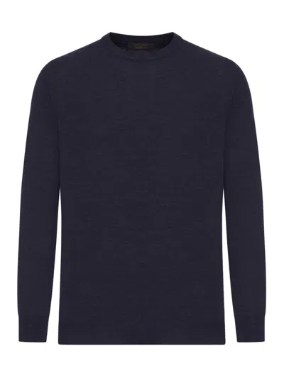 Crew Neck Sweater In Fine Combed Wool In Black