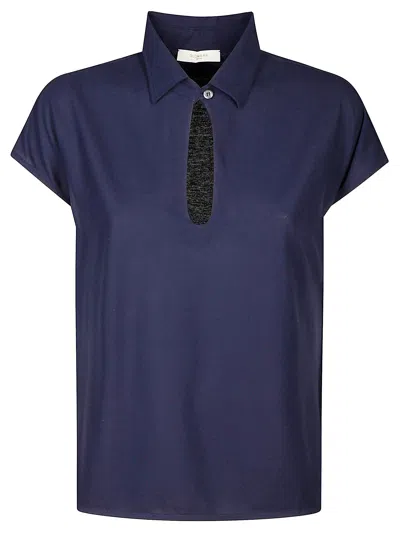 Indigo Blue Polo Shirt With Half-length Button Placket