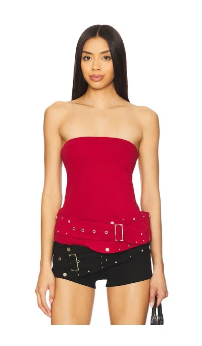 Ribbon Stud Fuzzy Tube Top In 올리브