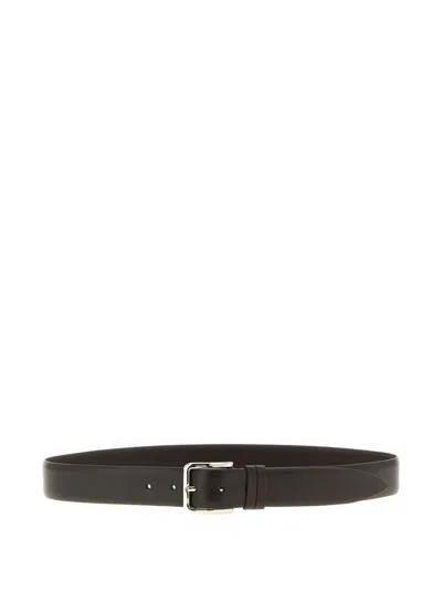 Polished Metal Buckle Leather Belt In Black