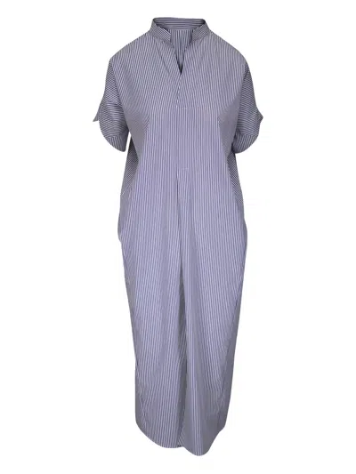 条纹图案中长连衣裙