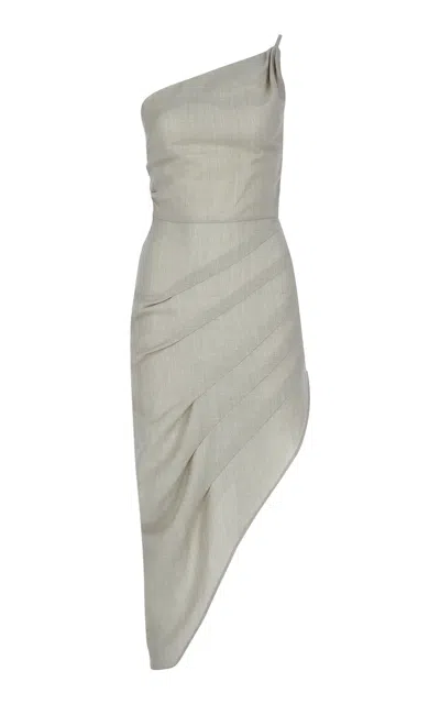 Asymmetric Linen-wool-silk Dress In Silver