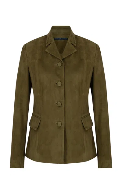 Vintage Suede Blazer In Green