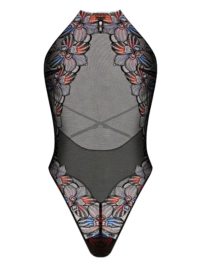 Laia Floral-embroidered Halter Bodysuit In Multi