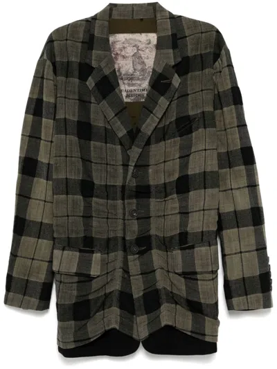 尖翻领格纹图案西装夹克