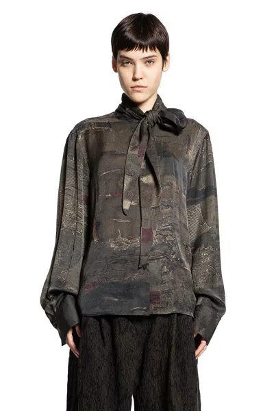 Digital Print Asymetric Scarf Shirt In Gray