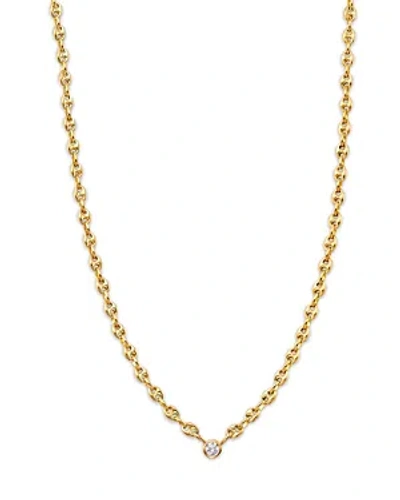 14k Yellow Gold Prong Diamonds Diamond Solitaire Mariner Link Chain Necklace, 14-16