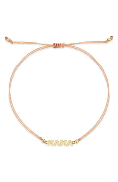 14k Yellow Gold Midi Bitty Symbols Mama Turquoise Cord Bolo Bracelet In Turquoise/gold