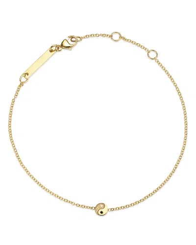 14k Yellow Gold Itty Bitty Symbols Black & White Diamond Yin Yang Charm Bracelet