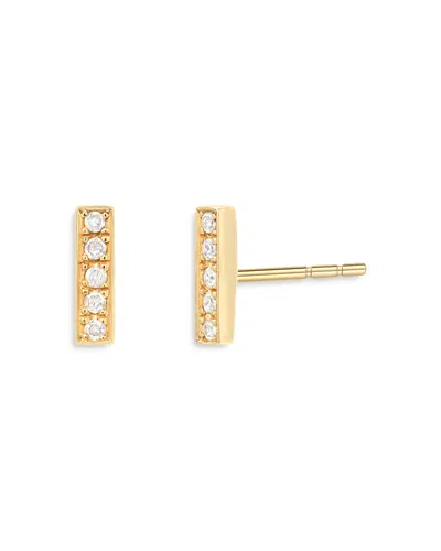 14k Yellow Gold Diamond Bar Stud Earrings