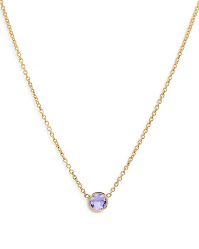 14k Yellow Gold Blue Sapphire Birthstone Solitaire Pendant Necklace, 16-18