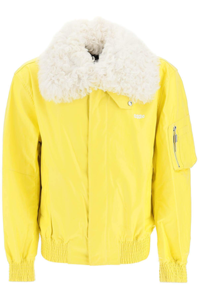 黄色、棉、山羊毛、对比领、正面纽扣、长袖、侧置插袋、侧置拉链口袋。