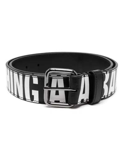 黑色 皮质 正面logo印花 环扣 打孔式 可调节松紧 银色五金配件