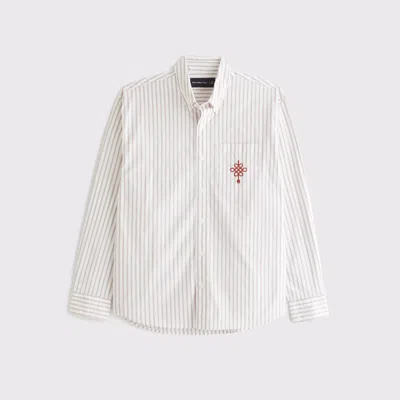 ABERCROMBIE & FITCH Lunar New Year Poplin Button-up Shirt In White