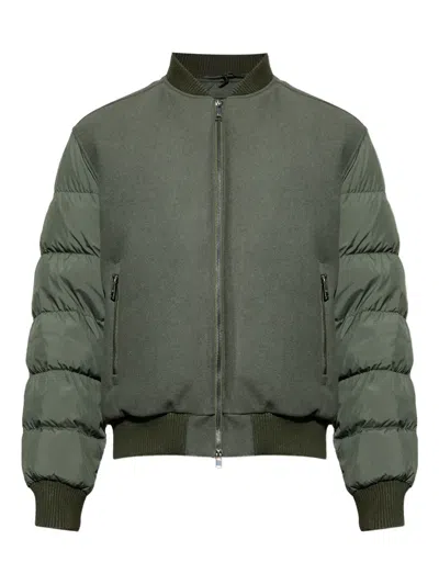 绿色 羊毛 填充衣袖 拉链 罗纹边饰 拉链口袋
