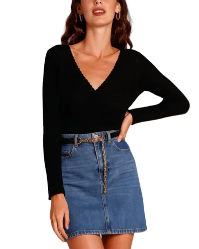Introducing the luxurious Adele Berto Wool Sweater, a must-have addition to any woman's wardrobe. Crafted from 100% wool, this cozy pullover sweater is both stylish and warm. The classic black color and unique pattern add a touch of elegance to any outfit. The sweater is approximately 21.7 inches from shoulder to hem, making it the perfect length for pairing with your favorite jeans or leggings. Hand wash recommended for care. Imported from high-quality materials. Elevate your winter fashion with the Adele Berto Wool Sweater.