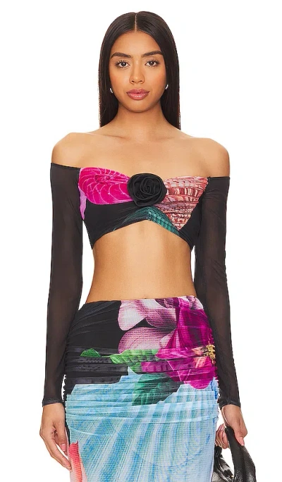 AFRM ELDEN 上装 – Surreal Shells - Black. 尺码 M (also – XXS, XS, S, L, 2X, 3X). 面料&里料: 95% 聚酯, 5%弹性纤维. 中国制造. 机洗. 露肩造型. Attached rosette embellishment at front. 网眼布料. 产品不成套出售. AFFM-WS338. AT028741JN24.