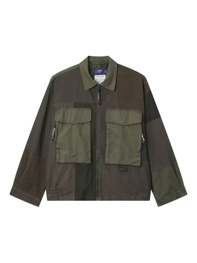 绿色 拼贴设计 两个正面口袋 灯芯绒细节 拉链 弹性松紧边