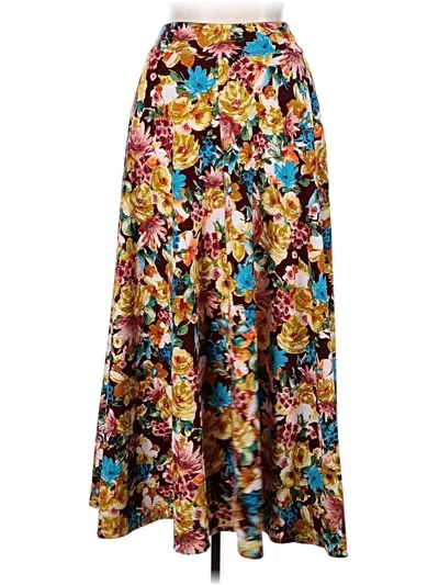 Agnes & Dora Casual Skirt, Size: X-Large. Item Details: Gold, Floral Pattern, Midi/Calf Length, Women's Bottoms, Polyester/Spandex