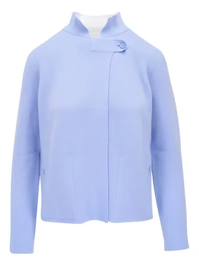 浅蓝色 单纽扣开合 拉链口袋