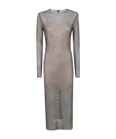 ALBERTA FERRETTI Crystal Net Midi Dress Long Sleeves In Gray