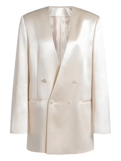 ALBERTA FERRETTI Longline Jacket Satin Finish Notched Lapels In Neutral