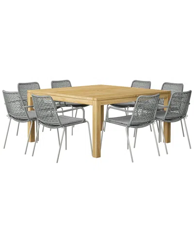 Be Ready For This Brand New Outdoor Collection By Amazonia Focused On Contemporary And Modern Designs, Comfort, And Maintaining The Durability Which Our Products Are Widely Recognized. This Patio Product Selection Was Crafted To Enhance Your Outdoor Areas With Modern Lines And Colors. We Are A Responsible And Conscious Brand And For That Reason, Our Wood Materials Are Made Of 100% Fsc Certified Eucalyptus With Different Premium Finishes And Certified High-Quality Teak Wood. We Also Include Mixed Materials That Are Perfect For Outdoors Because Of Their Durability And Weather Resistance. Immerse Yourself In The Amazonia Experience. The Amazonia Teak Sophisticated Line Combines Quality, Style, And Comfort. Crafted Of High Quality Teak (Tectona Grandis), This Modern Furniture Collection Will Make An Immediate Impact In Your Patio. 9-Piece Set: This Set Includes 8 High Quality Steel Dining Chairs And 1 Table. This Set Is Ideal For Both Indoors And Outdoors And Will Make Your Home Ready To Enjoy With Family And Friends. Chairs: Designed Under A Modern Influence These Chairs Are Durable, Lightweight But Also Sturdy. Frame Is Made Of High-Quality Steel With A Matte Finish With A Rope Seat. This Combination Is Able To Give You The Best Performance Under Outdoor Conditions. Sturdy & Durable: Amazonia Collection Products Can Be Left Outside Throughout The Year And Can Withstand All Types Of Weather, But It Is Recommended That They Are Treated With A Wood Sealer Oil At The End Of The Season In Order To Maintain The Golden-Reddish Finish. Dimensions & Weight: Table: 59L X 59W X 30H. Chairs: 27L X 22W X 33H. Seating Dimensions: 16L X 19W X 17H. Max Weight Capacity: 250 Lb Per Chair. Free Maintenance Kit Included: Easy To Maintain And Clean. This Kit Includes: A Wood Cleaner, Brush, Gloves, Sponge, Emery Paper, Paint Brush, Cotton Cloth, And Wood Sealer Oil. For Best Protection, Perform This Maintenance Every Season Or As Often As Desired. Imported Assembly Required This Item Will Be Delivered Via Freight Delivery To A Residential Address. (Deliverable Addresses Include Homes, Home-Based Businesses, College Dormitories, Apartments, And Townhouses. Deliveries Will Be Made To The Building's Ground Floor Entrance Or Garage Entrance Only. Within Two Weeks Of Receiving Your Shipping Confirmation Email, You Will Receive A Phone Call From The Delivery Service To Set Up An Appointment For Delivery (Please Confirm The Phone Number Listed With Your Billing Address Before You Place Your Order). Please Note: Appointments Are Contingent With The Business Hours And Availability Of The Delivery Service. You Must Be Present To Sign For The Item At The Arranged Time. A Confirmation Number And Further Details About The Delivery Service Will Be Sent Once Your Order Has Been Shipped.