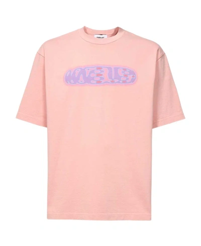粉色、棉、正面 logo 印花、圆领、短袖。