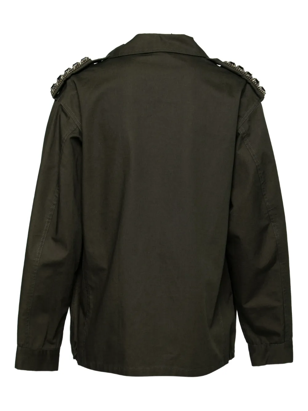 深绿色 棉 晶饰肩章 纽扣开合 拉链口袋 状态:很好。这款典藏臻品商品状态很好,略有使用痕迹,可能存在于材料或电镀褪色及划痕。