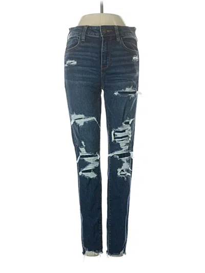American Eagle Outfitters Jeans, Size: 4. Item Details: Blue, Graphic Pattern, Distressed Wash, Straight Leg, Cropped, Boyfriend, High Rise, Women's Bottoms, Cotton/Viscose/Polyester