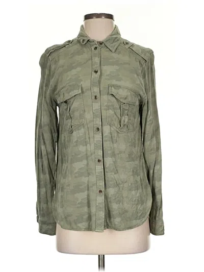 American Eagle Outfitters Long Sleeve Button Down Shirt, Size: Small. Item Details: Green, Camo Pattern, Collared Neckline, Long Sleeves, Ripped, Women's Tops, 100% Viscose