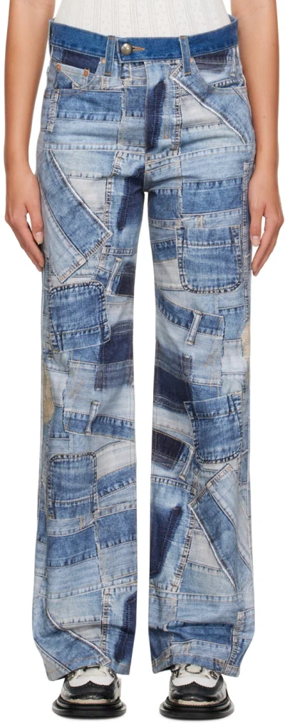 Non-stretch denim jeans. Graphics printed throughout. · High-rise · Belt loops · Five-pocket styling · Zip-fly · Leather logo patch at back waistband Supplier color: Blue