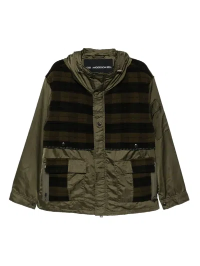 卡其绿色 正面饰有拉链开合 拼贴设计 两个正面盖袋