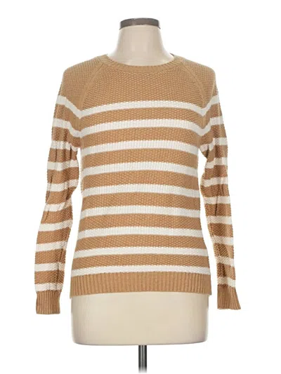 Ann Taylor LOFT Pullover Sweater, Size: Medium. Item Details: Tan, Stripes Pattern, Boatneck, Long Sleeve, Women's Tops, 100% Cotton
