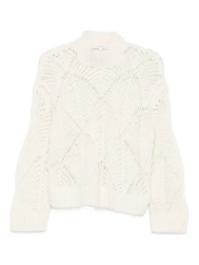 白色 镂空设计 高领 长袖 罗纹下摆 罗纹袖口