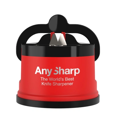 Known as the â€aWorld’s Best Knife Sharpener,†AnySharp Pro Knife Sharpener rejuvenates knives safely and hands-free. A few light strokes, and in seconds, the knife is sharp as new. The patented Power Grip suction cup base keeps the sharpener in place and the advanced diamond-honed Tungsten Carbide blades easily sharpen almost any knife. Professional-grade knife sharpening that helps make cooking easy and safe! Features Professional-grade results Restores virtually any knife (straight, serrated, & hardened steel blades) Keeps hands safe Easy to use, sharpens in seconds Patented Power Grip suction cup base, enabling single-handed use Tungsten Carbide Blades (stronger than steel) Needs only 3-4 gentle draws, no skill required, Pre-set at 20-degrees (optimal angle for steel blades) Small and lightweight, compact for easy storage 1-year no-hassle warranty Measurements -  2.5â€L x 2.69â€W x 2.5â€H; Weight - Â.36lb Durable metal alloy construction Pro CHEF, Pro, and Editions all use the same patented sharpening technology. The difference is in the construction and the finish. The Pro CHEF and Pro are constructed with durable metal alloy; The Editions are constructed with plastic. Of the three, the Pro CHEF is the only one with the stunning plated finish.  (See link to comparison chart above)Â